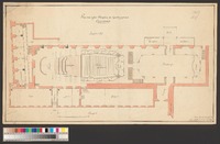 Grundriss des Gebäudes, z.T. mit Änderungen eingezeichnet.