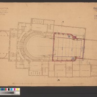 Altes Theater, Leipzig. Erdgeschoss. Grundriss, mit Bühenplatten - Klasse