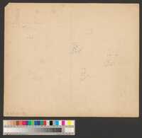 Verschiedene Maßangaben, Beschriftungen, Vorderansichten von Kulissen. Handschrift möglicherweise gleich wie 105. Planunng der Verwendung von Bauteilen aus Walküre .u. Rheingold. Detaillierter Kulissenzeichnungen als 106.